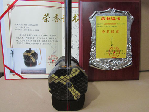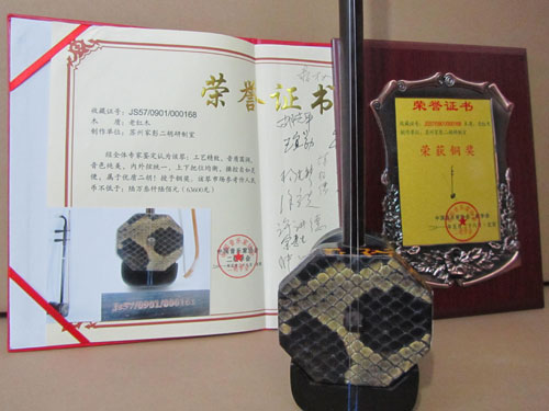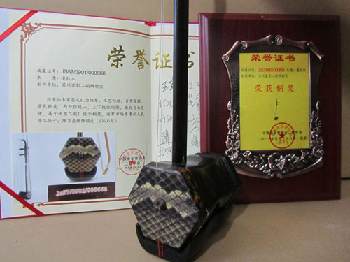 二胡制作大師丁家彭先生1949年出生樂器世家,17歲隨其祖父學琴藝,并深得精髓,其聰穎好學,悉心鉆研與 探求二胡制作,博得同行的欽佩贊許,更得了許多知名演奏家的稱贊,充分認識到二胡制作每個環(huán)節(jié),都對二胡制作都有影響力,因此對二胡的選材,選料,蟒皮都十分嚴格,二胡整體穩(wěn)定性良好,環(huán)境干擾影響極小。